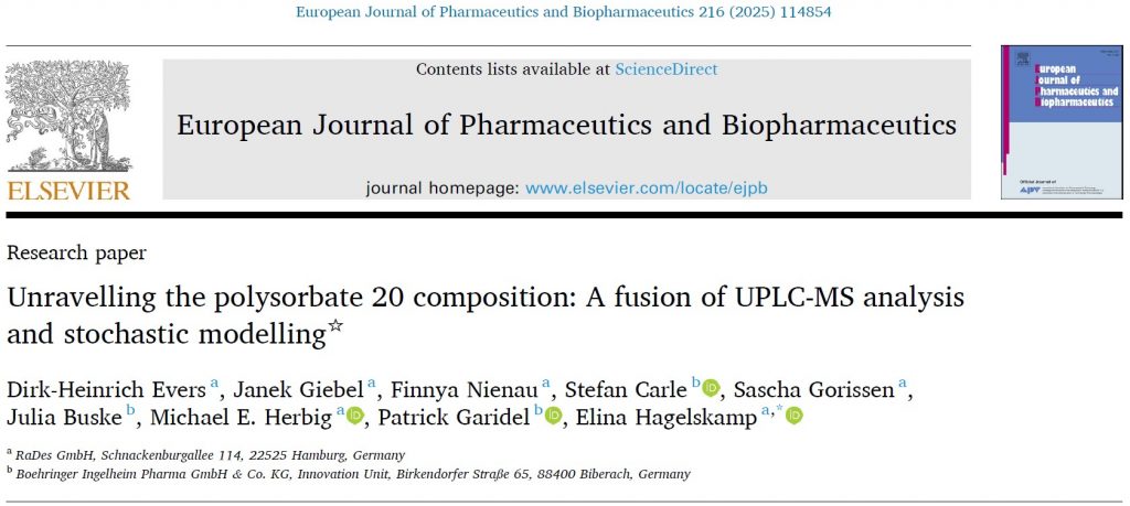In a recent publication by scientists from Boehringer Ingelheim together with Dirk Evers and Elina Hagelskamp from RaDes GmbH, a powerful and innovative all-in-one stability indicating analytical approach for polysorbate 20 using UPLC-QDa was presented.